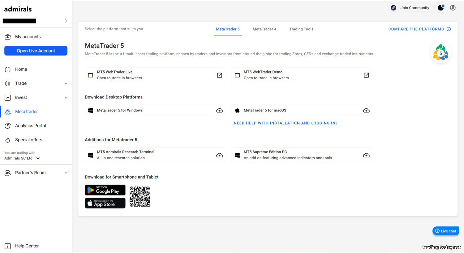 - Trading platforms: MetaTrader 4 and 5, Admirals WebTrader, the Admirals mobile app, plus the MetaTrader Supreme Edition desktop add‑on. TradingView charts are integrated via the web platform.