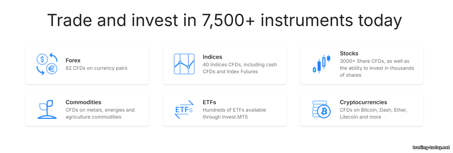 - Available instruments: 8,000+ — FX pairs; CFDs on shares, indices, commodities, bonds, cryptocurrencies, ETFs, etc.