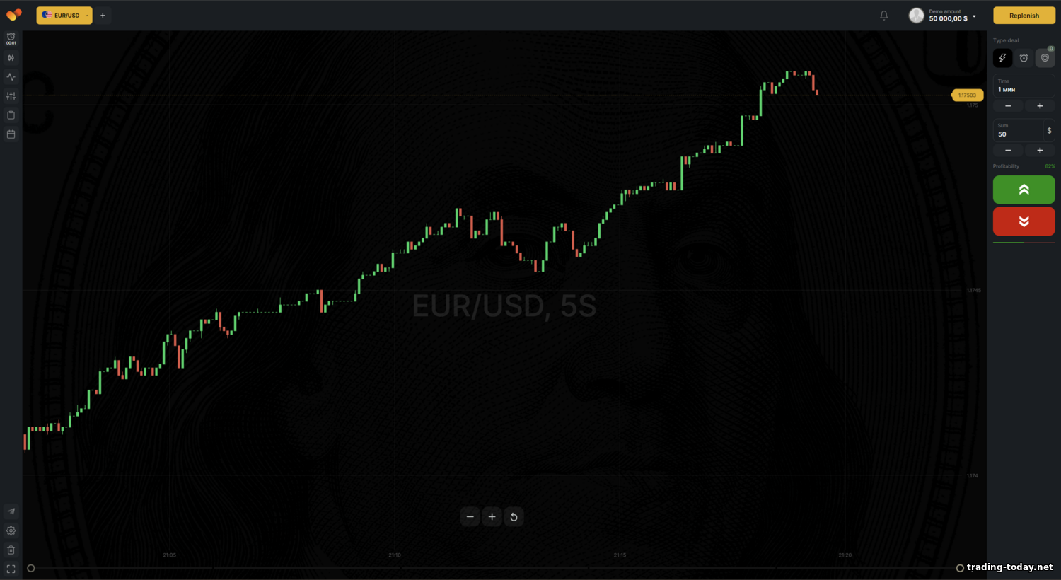 - Minimum trade (position) size. The minimum trade is 50 rubles. Many brokers set $1 (about 70 rubles). BinTrade is slightly lower so a 500-ruble balance can cover at least 10 positions. For reference, Binomo allows trades from $1, Pocket Option — from $1, and Quotex — from $1. Most likely BinTrade’s minimum is ~$1 in ruble terms. The maximum trade size isn’t disclosed; on similar platforms it’s often several thousand dollars, though few risk that per click.