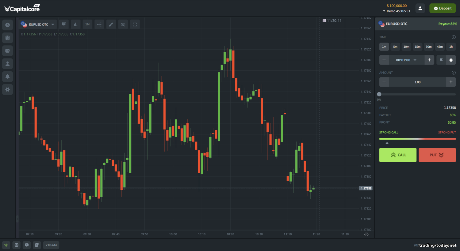 What platform do CapitalCore clients use? The broker offers its proprietary WebTrader platform, which runs in a browser and requires no installation. The main advantage is TradingView charts integrated inside the terminal. That means traders get familiar functionality: 100+ technical indicators, many drawing tools (lines, levels, shapes), and several chart types (candles, bars, area, etc.). The WebTrader interface is modern, includes a dark theme, and the panels are easy to navigate. On the left is the asset list with prices, in the center is a large chart, and on the right is the order panel (for CFDs) or Call/Put buttons (for binaries). You can open multiple tabs with charts for different instruments. The Forex order window includes all key fields: volume, stop loss, take profit, and order type (market or pending). For a binary contract, you choose the stake amount and expiration time, then place the trade with the relevant direction button.