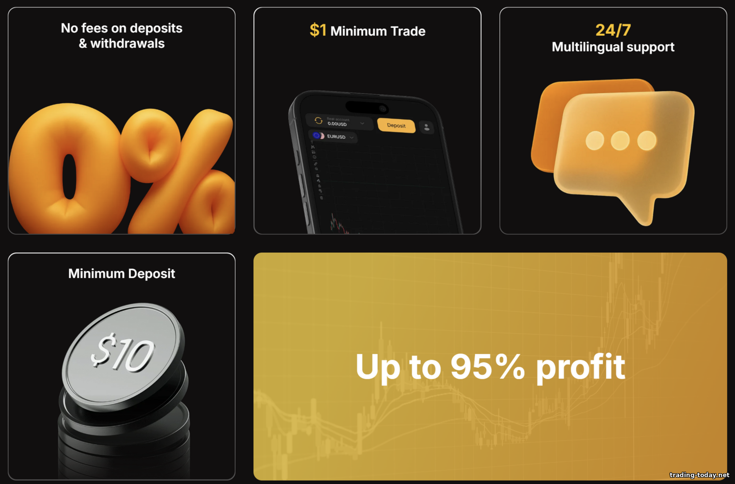 | 24/7 crypto trading: you can trade digital assets even on weekends. | No extra features: only classic “higher/lower” options. No early close, rollover, or copy trading. |