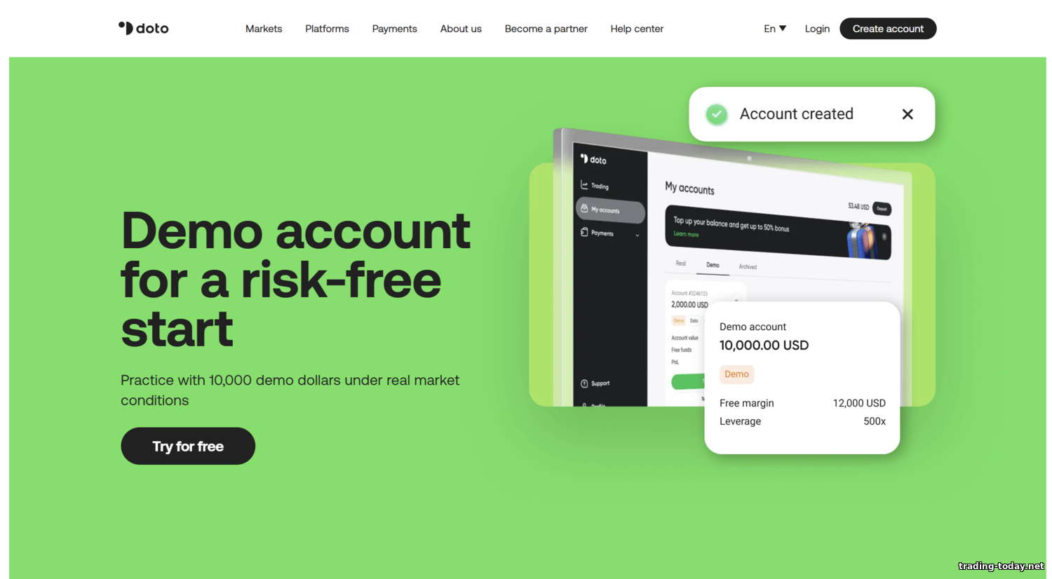 In terms of leverage and margin Doto provides maximum flexibility (especially outside the EU). This attracts aggressive traders, but we advise against using 1:500 fully – a few bad trades can wipe out the deposit.