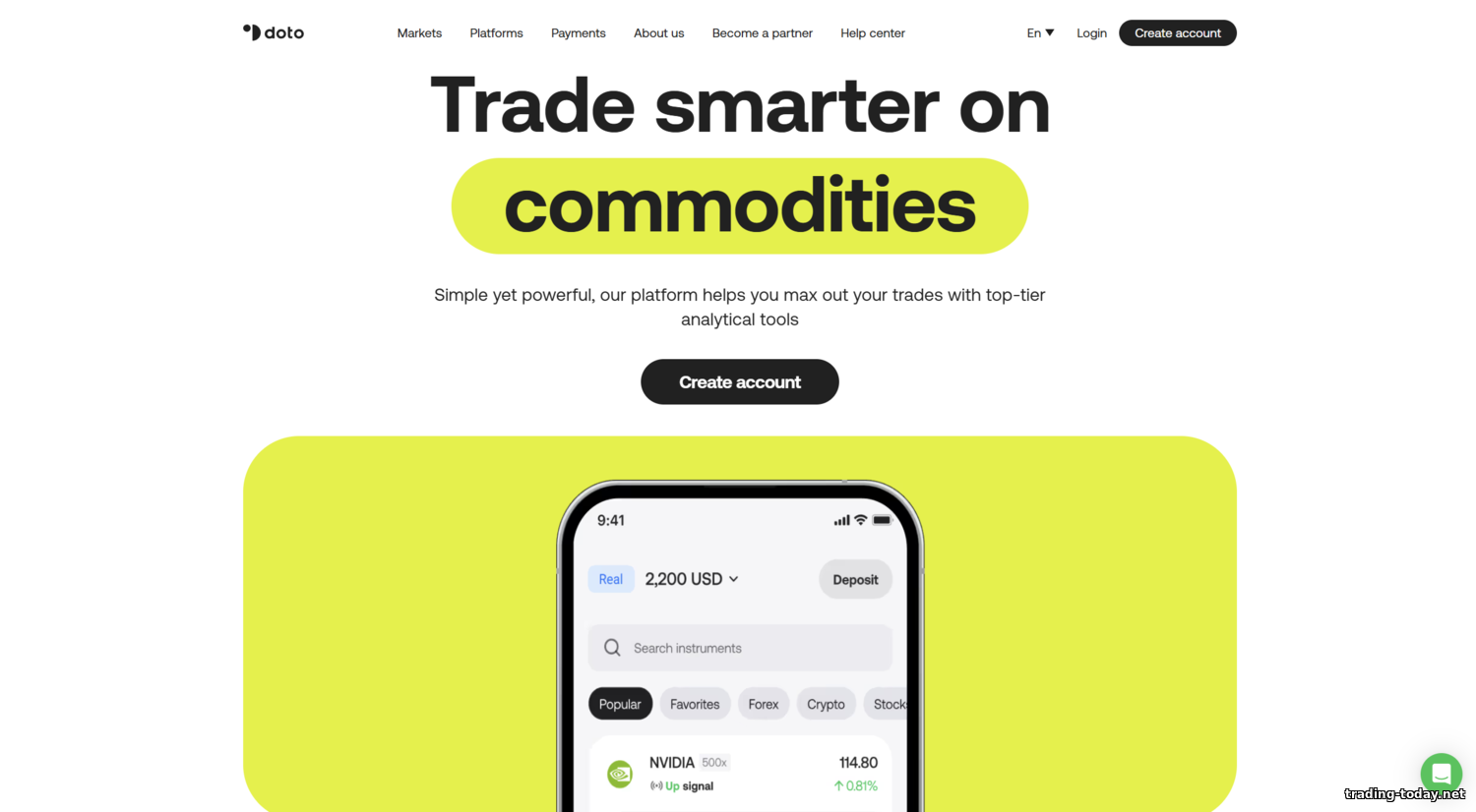 - Doto’s proprietary platform (WebTrader and mobile apps).