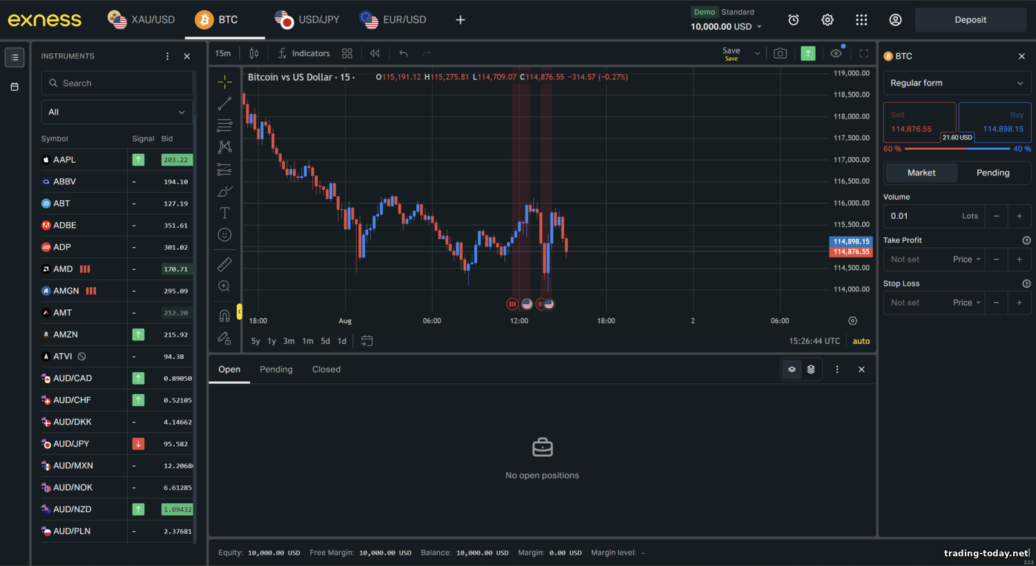 - Exness trading instruments