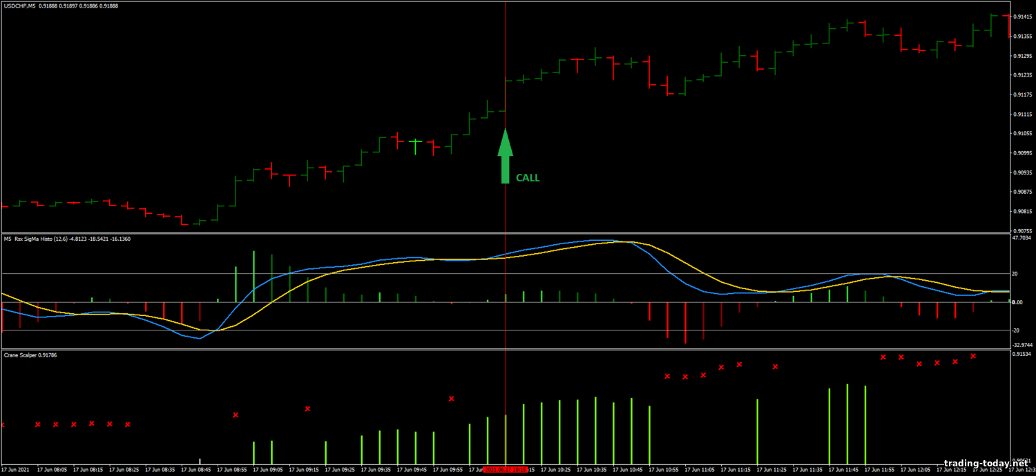 Strategy for binary options, Forex and CFD - Crane Scalper - a strategy based on two indicators that allows you to find the best moment to open a transaction in the direction of the trending price movement.