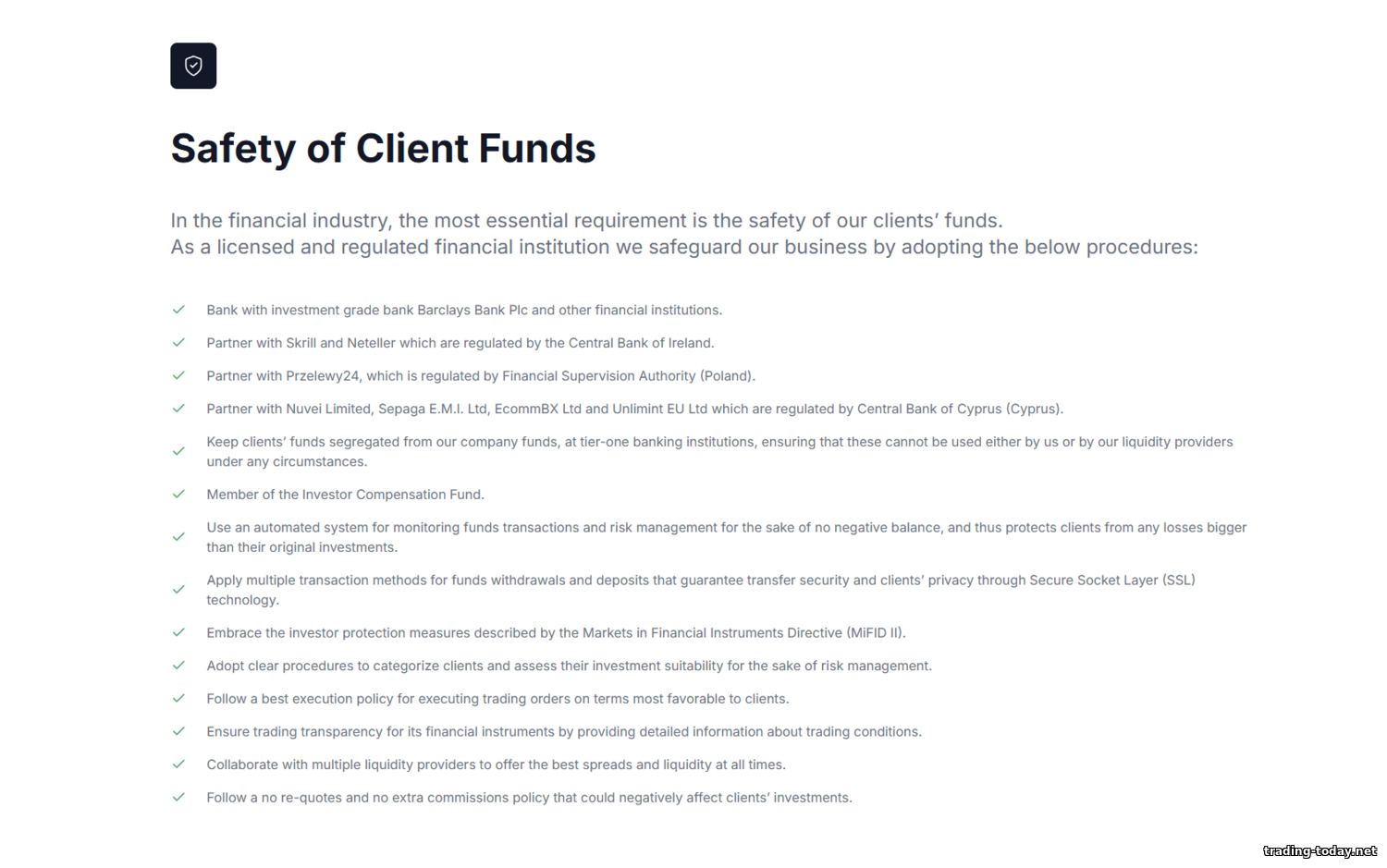| Fund protection | Segregated accounts, negative balance protection, investor compensation fund (EU) |