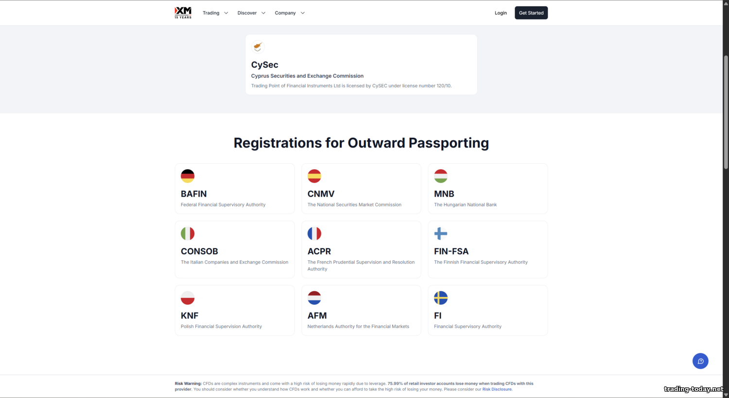- CySEC (Cyprus) — license No. 120/10 for Trading Point of Financial Instruments Ltd. The Cyprus Securities and Exchange Commission is a Tier‑1 EU regulator (MiFID II). The CySEC entity serves European clients, ensuring ESMA rules (leverage up to 1:30, investor protection, etc.).