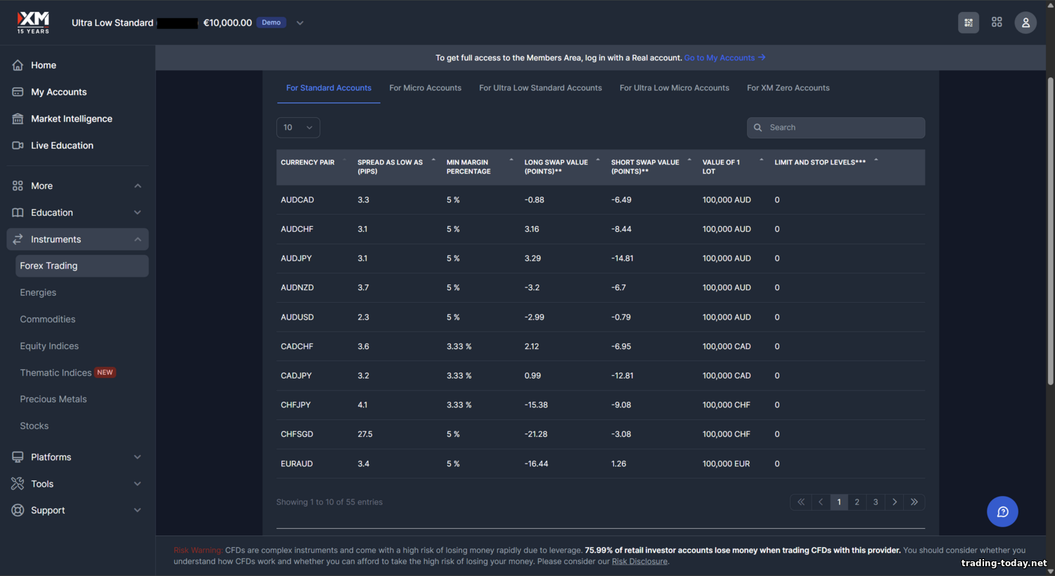 - Pros: years of operation and reputable licenses (ASIC, CySEC, etc.), low $5 minimum deposit, tight spreads (from 0.6 pips on Ultra Low) with no commissions, high‑speed execution with no requotes, negative balance protection, no deposit/withdrawal fees, rich research and education (daily webinars, courses), weekday round‑the‑clock support, bonuses and loyalty program for active traders, segregated accounts and EU compensation scheme, wide instrument range (including rarer ones like platinum, palladium, cotton, etc.).